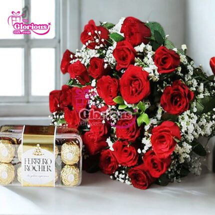 Ferrero Rocher Box With Red Roses Bouquet