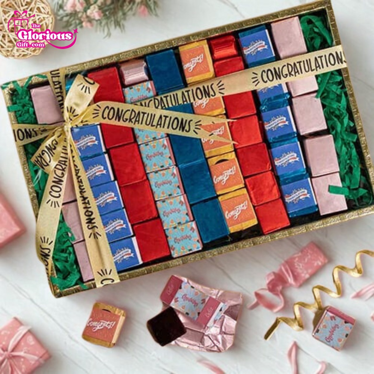 Beautifully decorated handmade Gold Leather Tray filled with delicious chocolate pralines in congratulations-themed packaging. Surprise them this month by sending this combo gift package. Tell your loved ones how much you love them and their special occasion means a lot to you. So make your beloved happy by sending them a beautiful and precious gift tray.