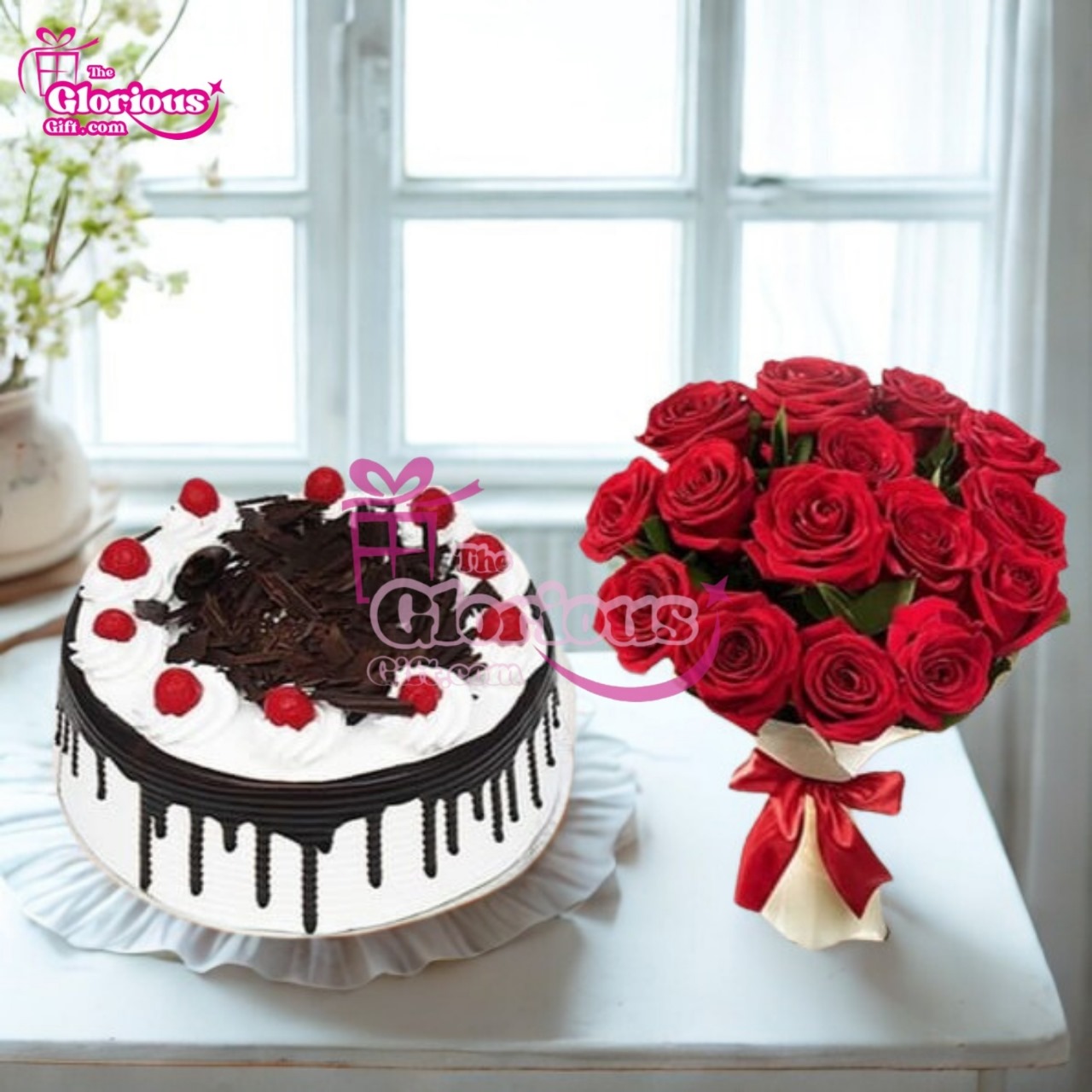 The best combination of Cake (Black Forest) & Red Roses shows your love. You can deliver this combination for all events whether its Birthday, Wedding, congratulation etc.
