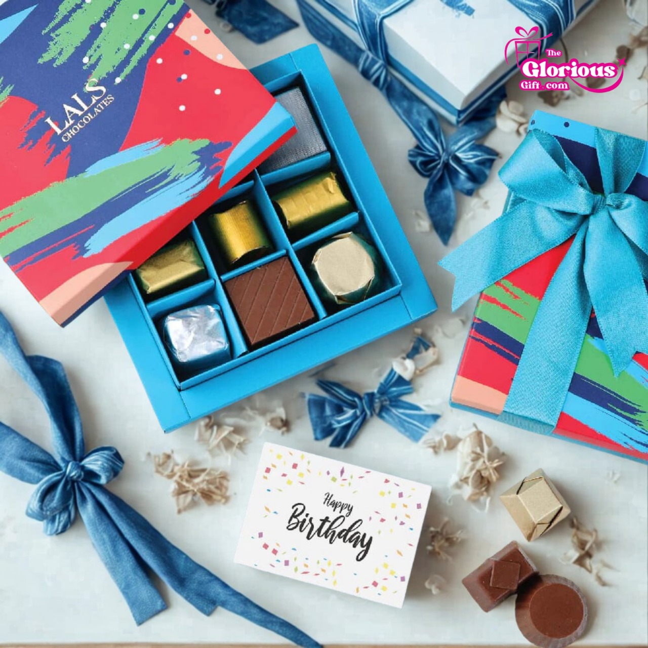 A beautiful brushstrokes design makes this a striking gift with its vibrant teal and red shades. Fill the box with delicious classic chocolates or chocolate bonbons and send them to loved ones in Pakistan. It’s perfect for birthdays, anniversaries, or just as a thank you or congratulatory gift (Or even as a treat for yourself).