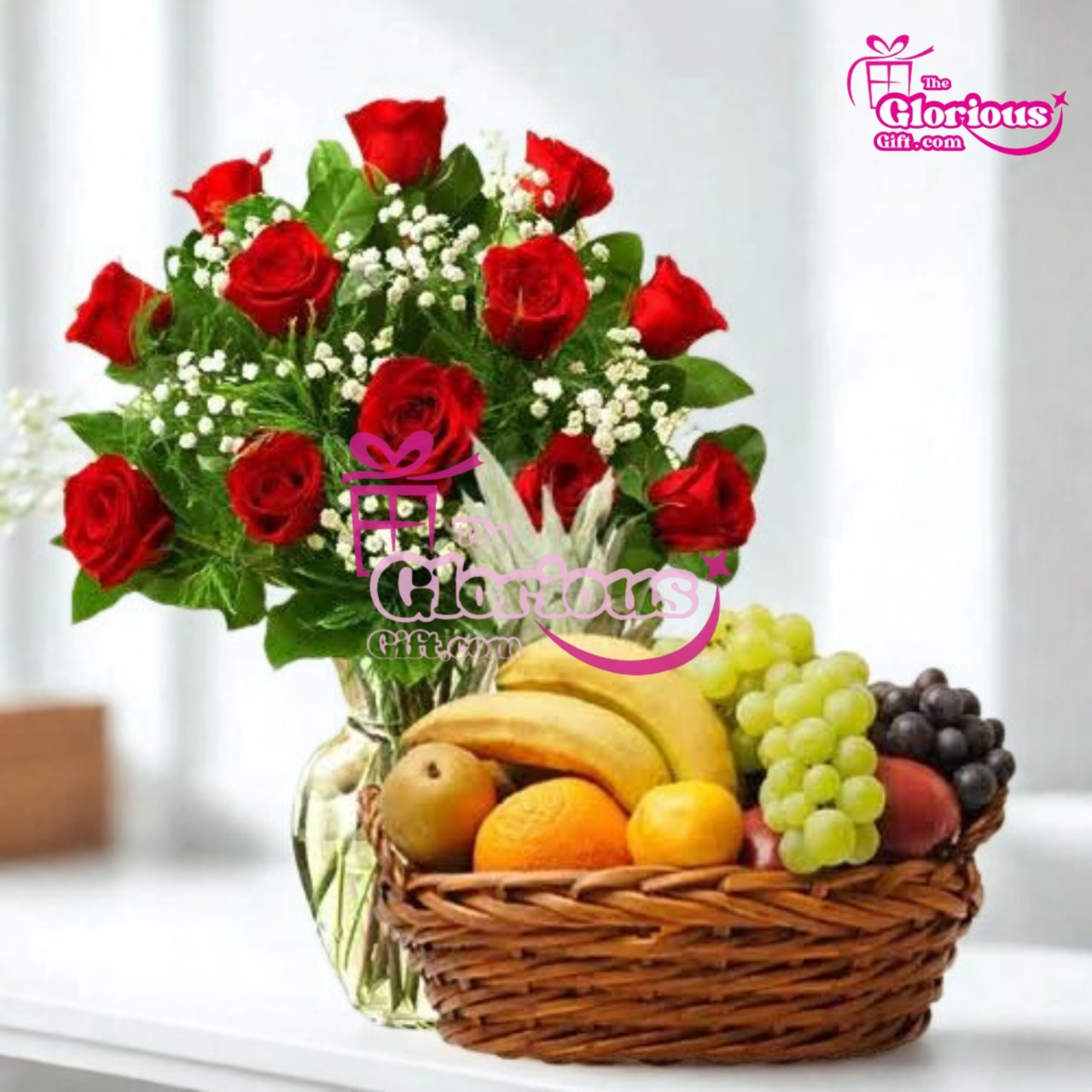 Enjoy the natural sweetness with this Fruit Basket & Premium Flowers — A refreshing gift of health and taste. Perfect for sharing love and care with family and friends on Eid, Ramadan, birthdays, weddings, or as a get well soon surprise.