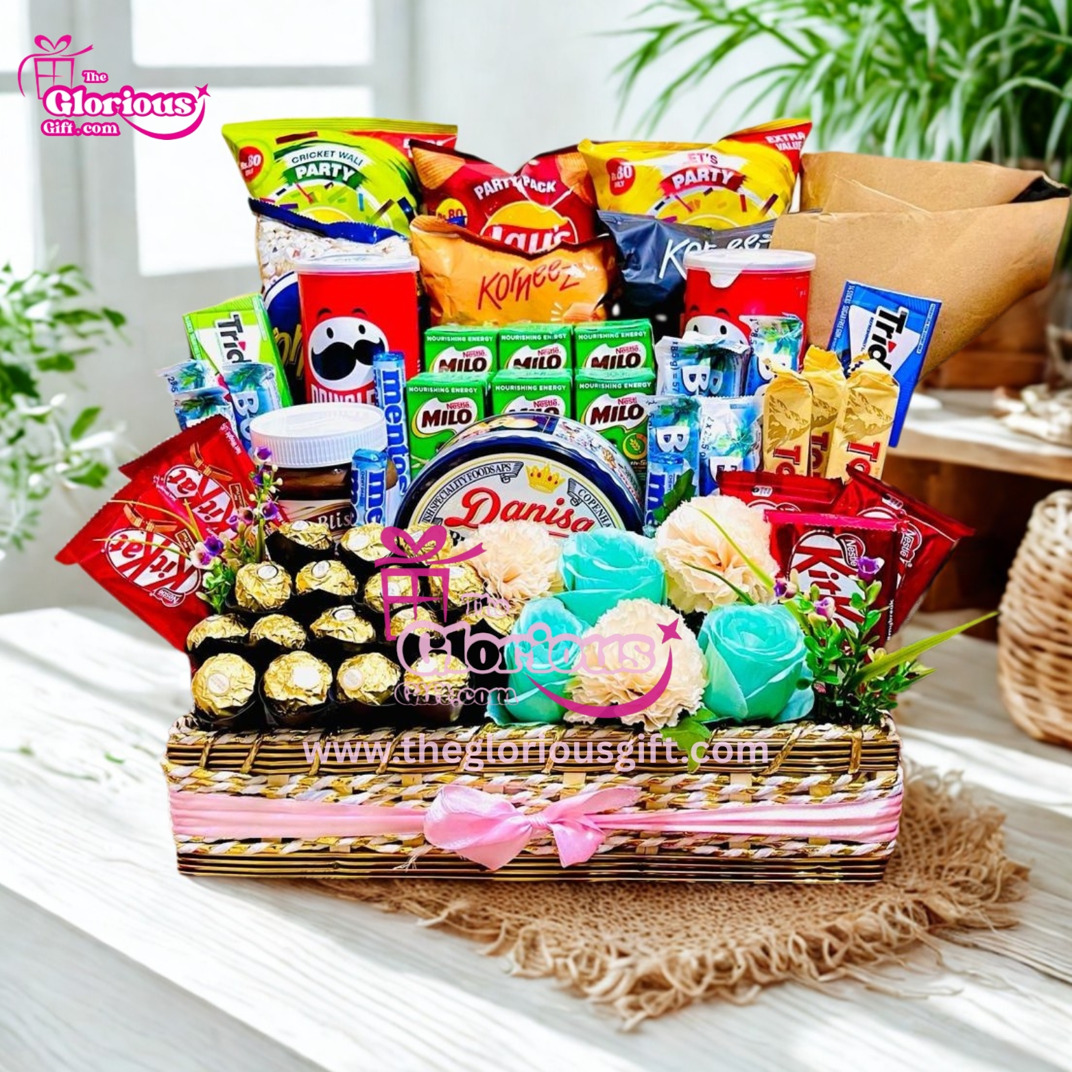 An elegant basket filled with rich chocolates and delightful treats, crafted to add a touch of luxury to every special occasion.