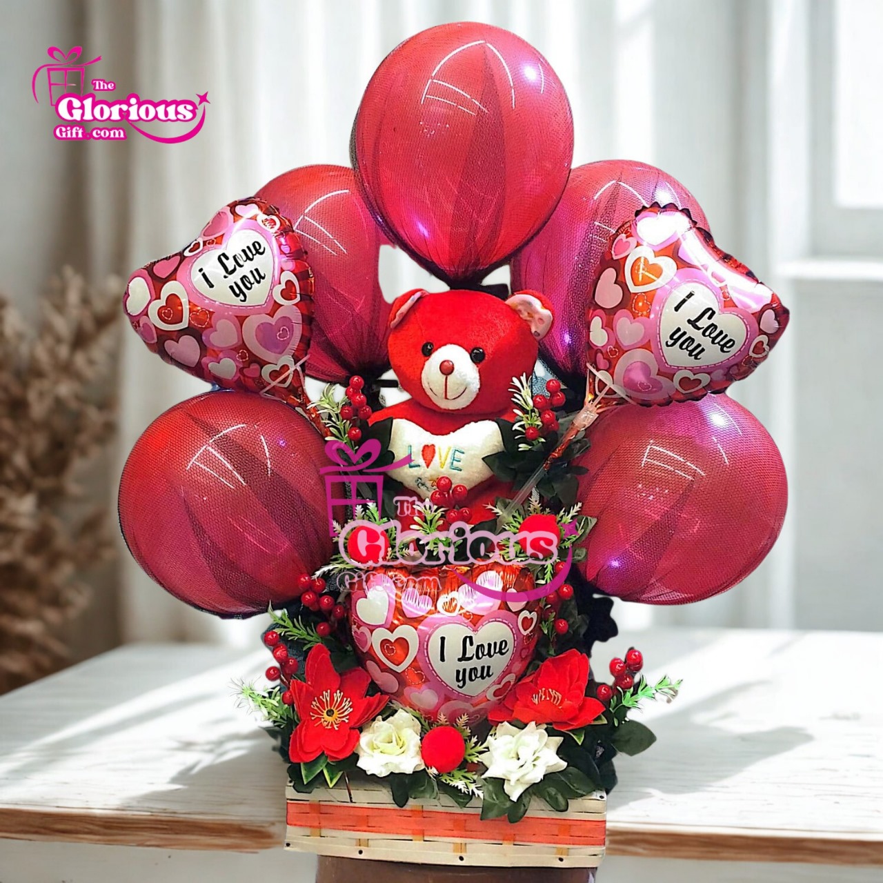 Surprise your loved ones with this charming basket, featuring fresh red roses and a fancy balloon. A perfect gesture of love for your special person.