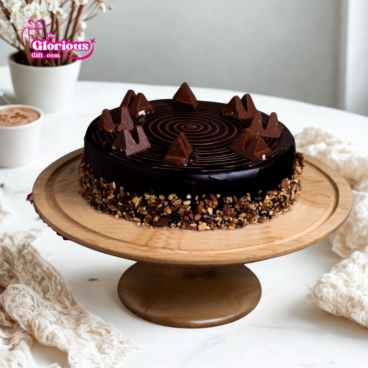 Indulge in the ToblerOne Cake by LE Cafe. Moist chocolate sponge layered with creamy chocolate and crunchy ToblerOne pieces, finished with a rich drizzle for the ultimate treat.