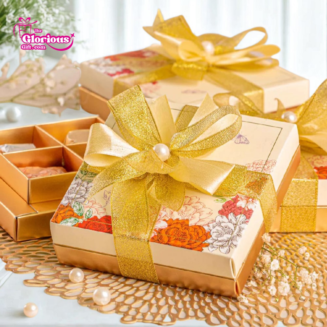 A charming keepsake box adorned with a delicate floral design, filled with fresh, handcrafted Lals chocolates. Perfect for weddings, corporate giveaways, or as a thoughtful gift for your loved ones and equally delightful as a sweet indulgence for yourself.