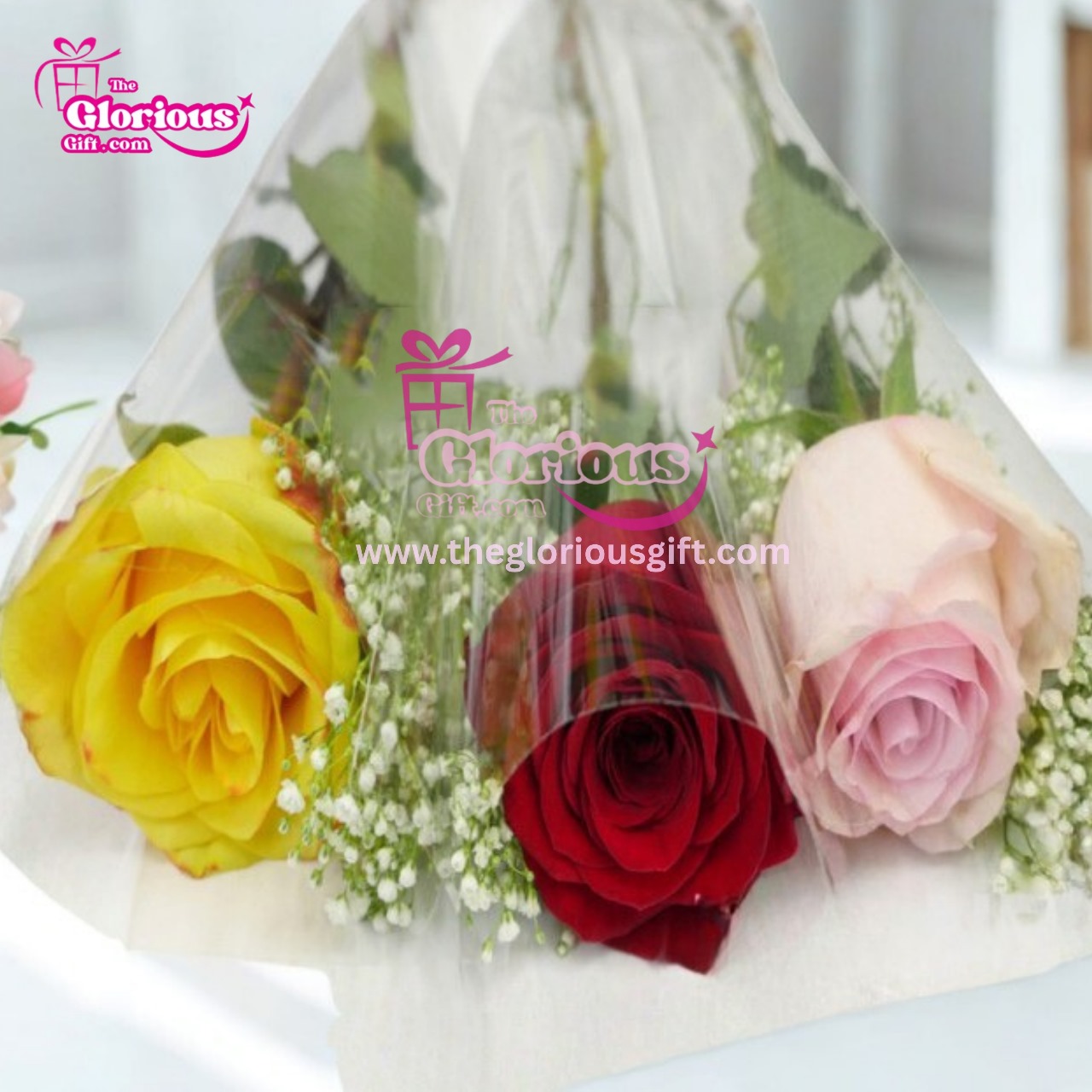 - 3 Imported Yellow, Red, Pink Roses with Jypiso